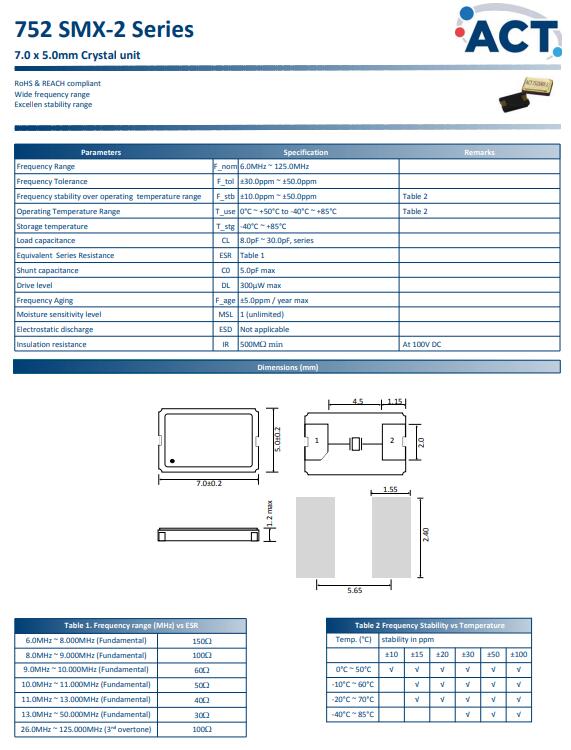 英國艾西迪晶振,752 SMX-2晶振,7050二腳晶振