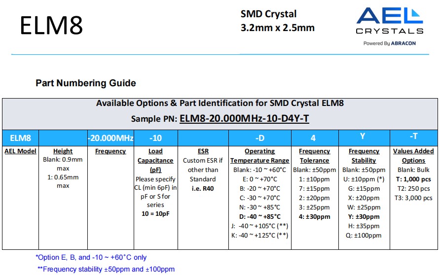 ELM8-24.000MHz-9-R40-N1U-T,AEL進(jìn)口晶振,3225mm諧振器,車載控制器晶振,規(guī)格表