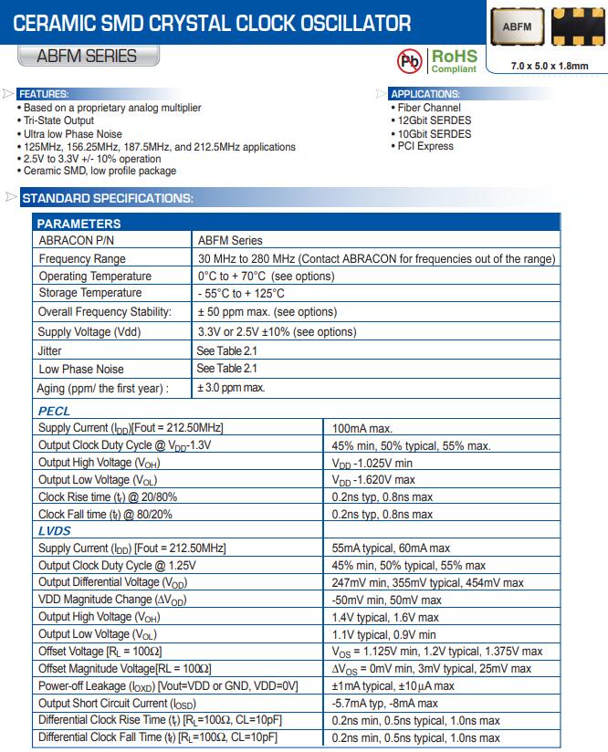 ABRACON晶振 | 標示 | ABFM系列晶振 | 晶振基本信息對照表 |