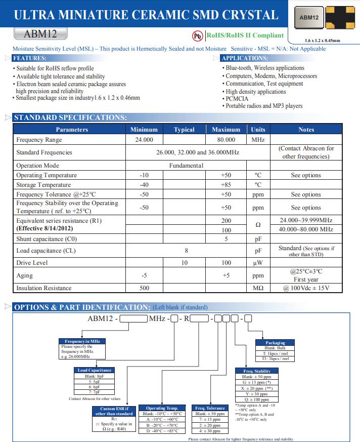 ABM11-24.000MHZ-12-N1G-T | Abracon晶振 | ABM11 | 24 MHz | ±10ppm | 12pF |
