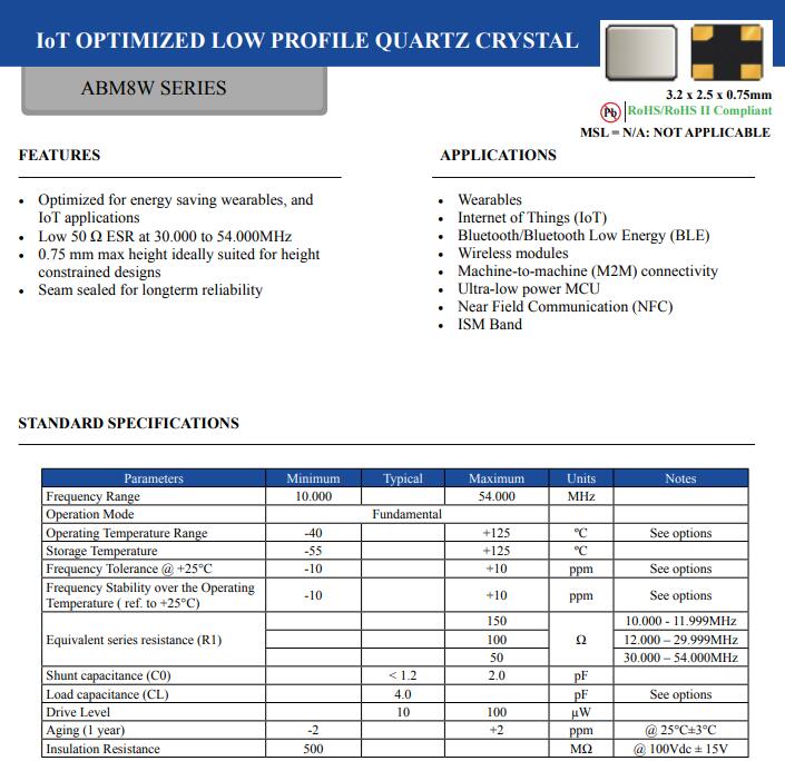 什么使IoT打勾? Abracon晶振的低等效串聯(lián)電阻(ESR)和低負(fù)載電鍍電容(CL)晶體是綠色和節(jié)能MCU和便攜式通信的理想選擇芯片組。 在降低功耗的競(jìng)爭(zhēng)中,許多片上振蕩器正在被匱乏輸出驅(qū)動(dòng),通常不能使用標(biāo)準(zhǔn)晶體維持振蕩。 Abracon的最新系列用于微功率應(yīng)用的石英晶體克服了這些挑戰(zhàn)。