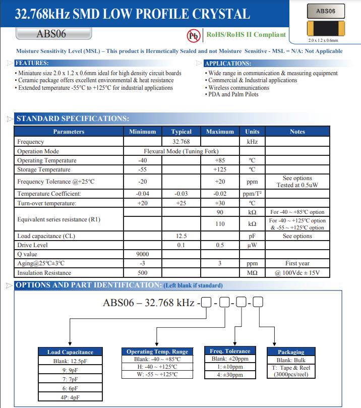 更多>>ABS06-32.768KHZ-9-1-T 32.768KHz 10PPM 9PF 2012
