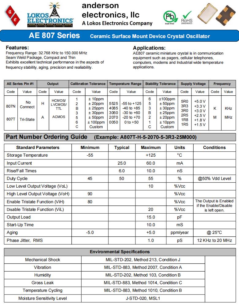 Anderson晶振|AE807T-H-2-4085-3-3R3-25M000|5032mm晶振,Anderson晶振,AE807進(jìn)口晶振,有源晶振,AE807T-H-2-4085-3-3R3-25M000晶振,石英晶體振蕩器,5032mm晶振,四腳貼片晶振,SMD晶振,頻率25MHz,電壓3.3V,工作溫度-40~85°C,頻率容差20pm,緊湊薄晶振,低老化晶振,高可靠性晶振,蜂窩電話晶振,計(jì)算機(jī)應(yīng)用晶振,調(diào)制解調(diào)器晶振,工業(yè)自動(dòng)化晶振.