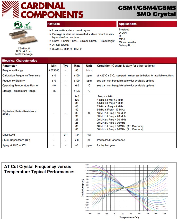 CSM1Z-A5B2C3-40-14.31818D18 | Cardinal晶振 | CSM1 | MHz Crystal | 14.31818MHz |