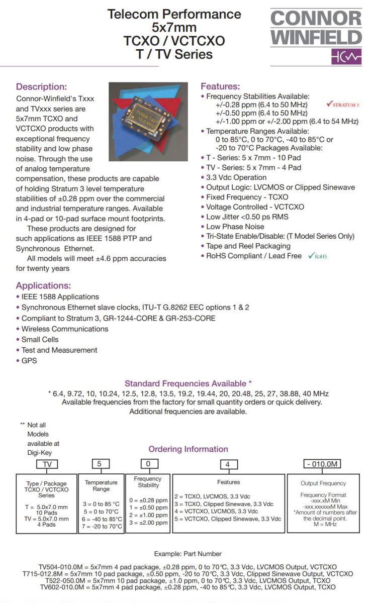更多>>康納溫菲爾德晶振,TX176晶振,TCXO晶振