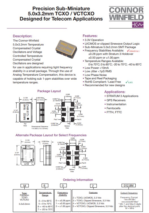 更多>>Connor-Winfield晶振,TX214系列晶振,5032有源晶振