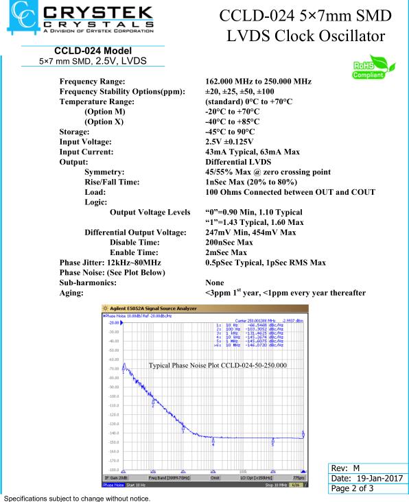 更多>>CCLD-024差分時鐘振蕩器,瑞斯克晶體,CCLD-024X-50-162.000晶振