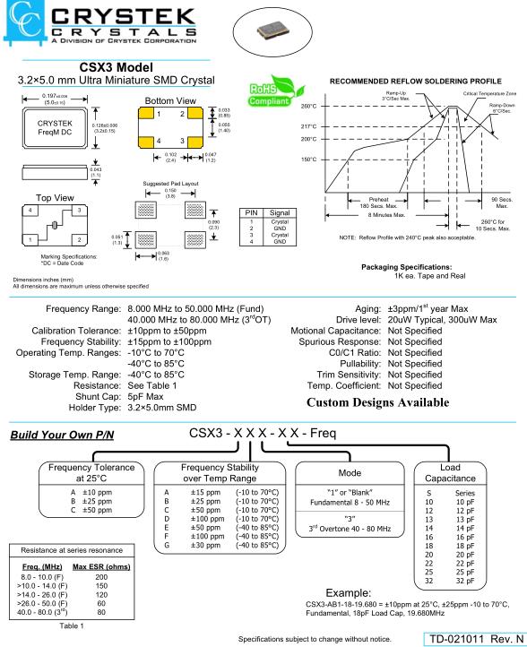 更多>>CSX3無源環(huán)保晶體,Crystek美國晶振,CSX3-AB1-18-16.000諧振器