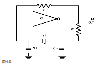 第二種類型的電路是"并聯(lián)諧振"電路,如圖4.0所示,您將立即注意到包含兩個電容,稱為CL1和CL2,這些電容器位于石英晶體振蕩器外部,具有將諧振頻率提高到高于串聯(lián)諧振頻率的效果,特別注意,振蕩器頻率增加而不是晶體頻率,這個頻率通常被稱為"并行"頻率,但實際上這是一個誤稱,該頻率來自包含電容器,應(yīng)恰當(dāng)?shù)胤Q為"負(fù)載諧振"頻率,由于電容器將頻率增加到高于串聯(lián)諧振頻率的點,因此必須仔細(xì)計算和指定它們的值.