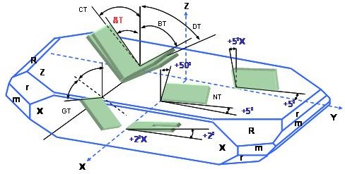 根據(jù)不同的應(yīng)用領(lǐng)域以及不同環(huán)境下產(chǎn)品的工作溫度要求,因此創(chuàng)造了多種多樣不同的石英晶振切割角度方式.比如AT-,BT-CT-DT-NT-GT-等多種不同的切割板片.不同的切割方向的板片具有不同的彈性常數(shù)張量,不用的壓電常數(shù)張量以及不同的介電常數(shù)張量.而這些張量在石英晶振,石英元件的設(shè)計以及應(yīng)用上展現(xiàn)了不同的振蕩以及溫度特性(如下圖所示),表現(xiàn)了在Z-plat石英結(jié)構(gòu)上,幾種不同方向的石英板片切割方式. 石英晶振的振動模態(tài)