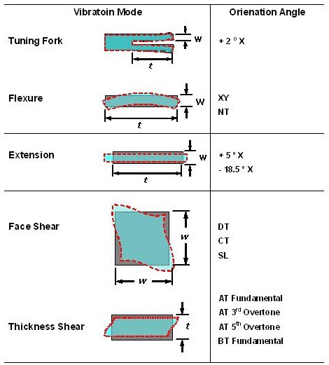 石英晶振的切割角度與振動模態(tài)