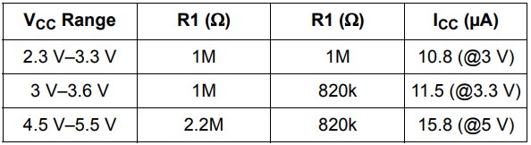 表1.各種VCC范圍的R1和R2值