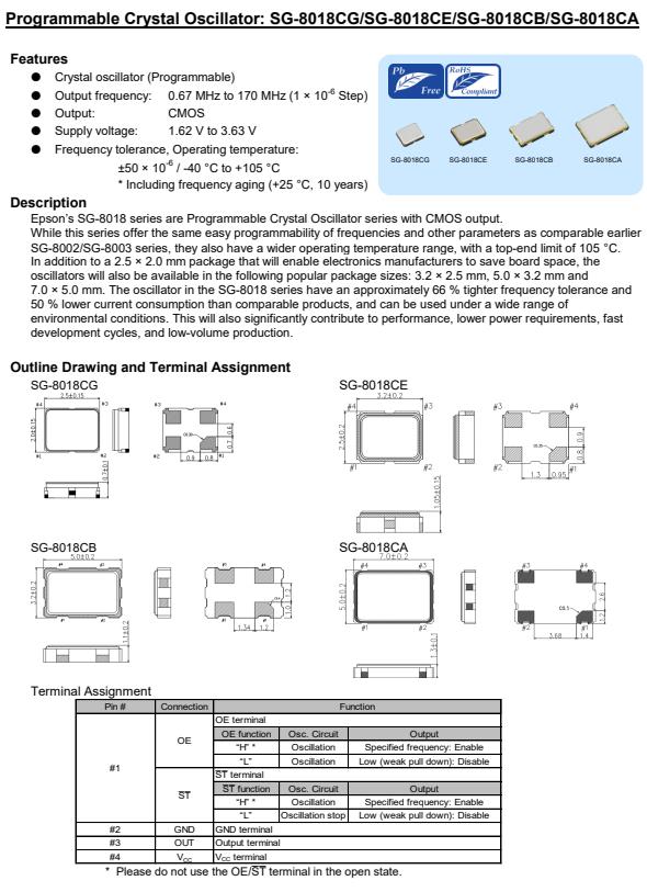 X1G005601030200 | SG-8018CG | 1.000000 MHz | 2.50 x 2.00 x 0.80 mm | CMOS | 1.620 to 3.630 V | -40 to 105 °C | +/-50 ppm | ≤ 3.5 mA |