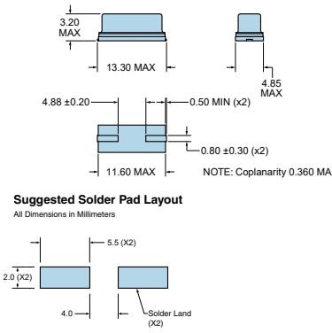 E1SAA32-6.000M | AT-Cut Fundamental | SMD HC-49/UP Short | ±100ppm | 0°C to +70°C | ±5ppm | 7pF Maximum |