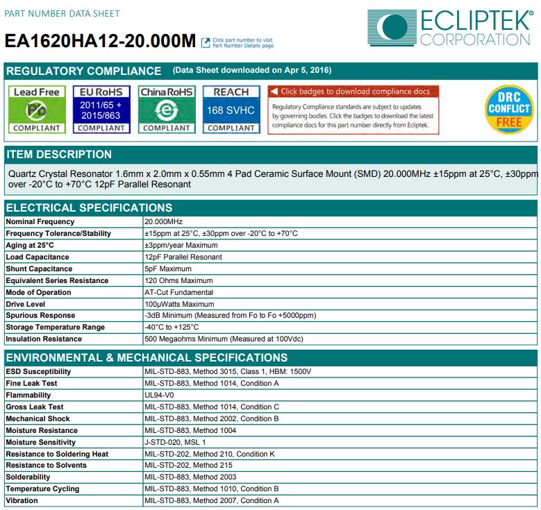 更多>>日蝕晶振,EA1620HA12-20.000M晶振,2016mm晶振