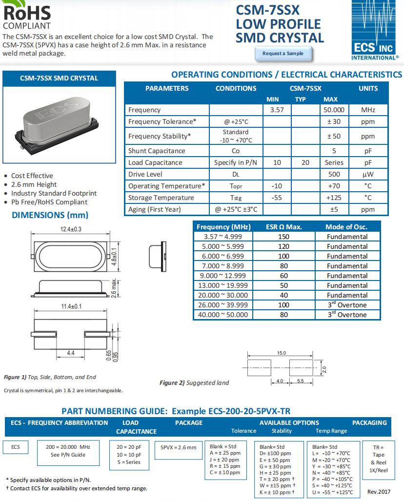 ECS-200-20-5PVX | ECS晶振 | CSM-7SSX | 20MHz | -10°C ~ 70°C |