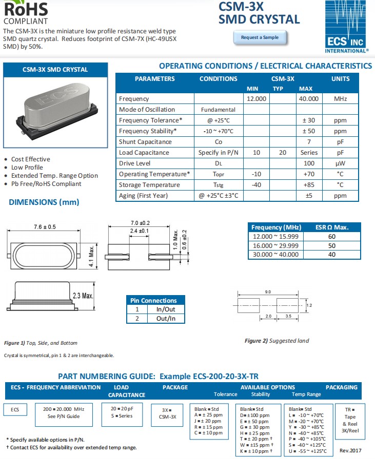 ECS-120-20-3X-TR | ECS伊西斯 | CSM-3X | 12MHz | -10°C ~ 70°C |