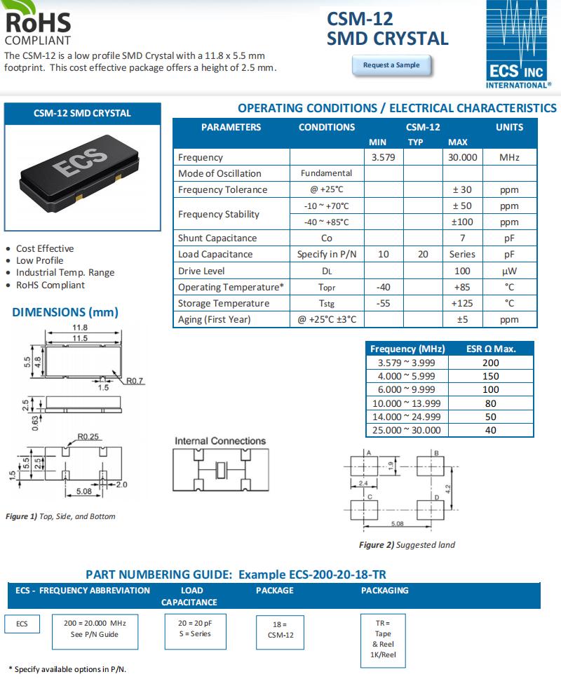 ECS-200-20-18-TR,CSM-12,ECS進(jìn)口晶振,20MHz石英晶體,無鉛環(huán)保晶振,規(guī)格表