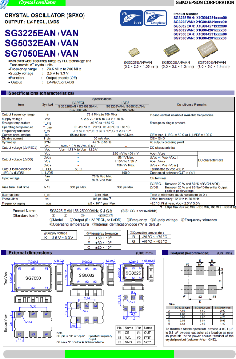 SG5032EAN 212.500000M-KJGA3 | EPSON | SG5032EAN | XO (Standard) | 212.5 MHz | LVPECL | ±50ppm |