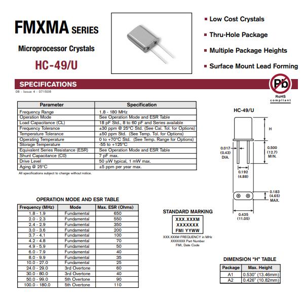更多>>FMI晶振,HC-49/U晶振,二腳晶體諧振器