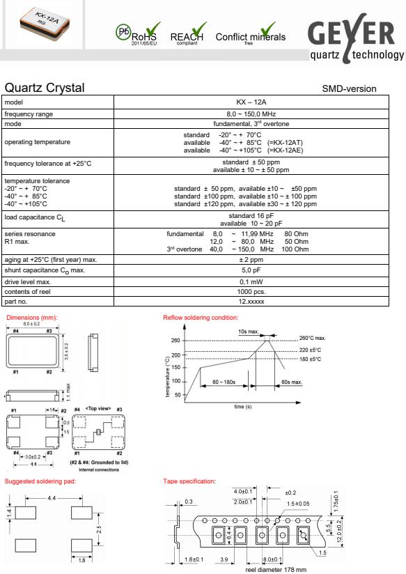 GEYER晶振,KX-12A高品質(zhì)晶振,SMD無(wú)源晶振,貼片晶振本身體積小,超薄型石英晶體振蕩器,特別適用于有目前高速發(fā)展的高端電子數(shù)碼產(chǎn)品,因?yàn)?strong>晶振本身小型化需求的市場(chǎng)領(lǐng)域,小型,薄型是對(duì)應(yīng)陶瓷振蕩器(偏差大)和普通的石英晶體振蕩器(偏差小)的中間領(lǐng)域的一種性價(jià)比較出色的產(chǎn)品.產(chǎn)品廣泛用于筆記本電腦,無(wú)線電話,衛(wèi)星導(dǎo)航SSD,USB,Blu-ray等用途,符合無(wú)鉛焊接的高溫回流焊曲線特性.