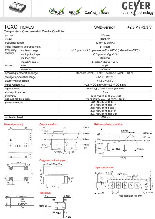 更多>>GEYERCrystal,KXO-82有源振蕩器,7050mm貼片晶振