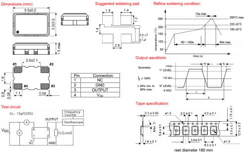 supply voltage VDD | +2.8 V DC ± 5% or +3.3 V DC ±5% | |
