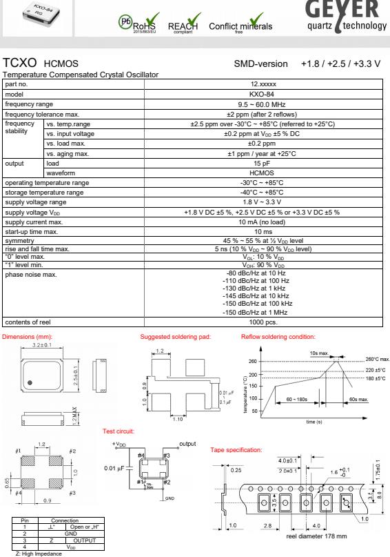 initial frequency tolerance max. | ±2 ppm (after 2 reflows) | |