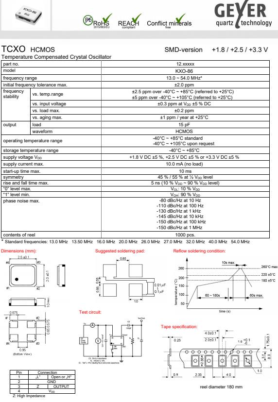 更多>>GEYER晶振,KXO-86溫補(bǔ)晶振,2520mm貼片晶振