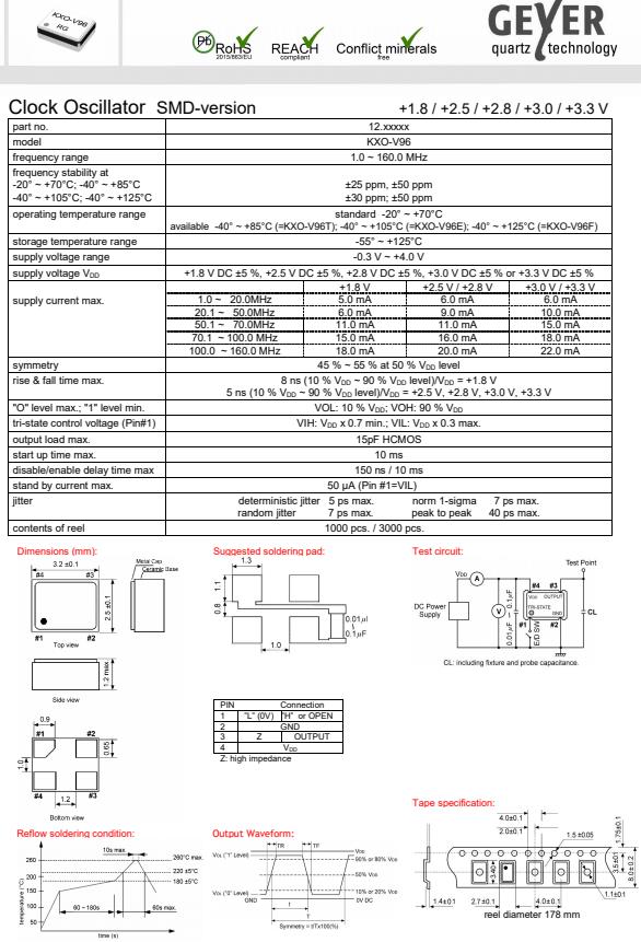 更多>>格耶德國晶振,KXO-V96貼片有源晶振,3225mm振蕩器