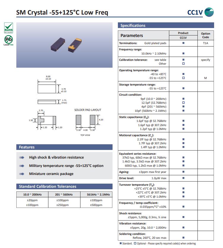 高利奇晶振,CC1V晶振,8038二腳晶振貼片晶振本身體積小,超薄型石英晶體諧振器,特別適用于有目前高速發(fā)展的高端電子數(shù)碼產(chǎn)品,因為晶振本身小型化需求的市場領(lǐng)域,小型?薄型是對應(yīng)陶瓷諧振器(偏差大)和普通的石英晶體諧振器(偏差小)的中間領(lǐng)域的一種性價比較出色的產(chǎn)品.產(chǎn)品廣泛用于筆記本電腦,無線電話,衛(wèi)星導(dǎo)航HDD, SSD, USB, Blu-ray等用途,符合無鉛焊接的高溫回流焊曲線特性