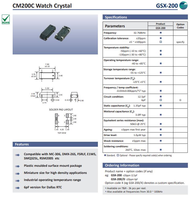 高利奇晶振,GSX-200晶振,8038四腳晶振小體積SMD時(shí)鐘晶體諧振器,是貼片音叉晶體,千赫頻率元件,應(yīng)用于時(shí)鐘模塊,智能手機(jī),全球定位系統(tǒng),因產(chǎn)品本身體積小,SMD編帶型,可應(yīng)用于高性能自動(dòng)貼片焊接,被廣泛應(yīng)用到各種小巧的便攜式消費(fèi)電子數(shù)碼時(shí)間產(chǎn)品,環(huán)保性能符合ROHS/無鉛標(biāo)準(zhǔn).