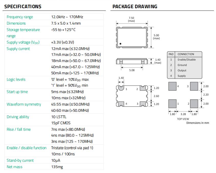 Supply voltage (VDD) | 3.3V (±5%) | |