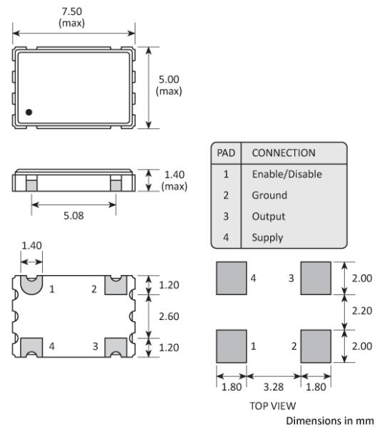 Golledge品牌-GXO-U108L/AI 24.576MHz-6G光纖通道晶振尺寸圖