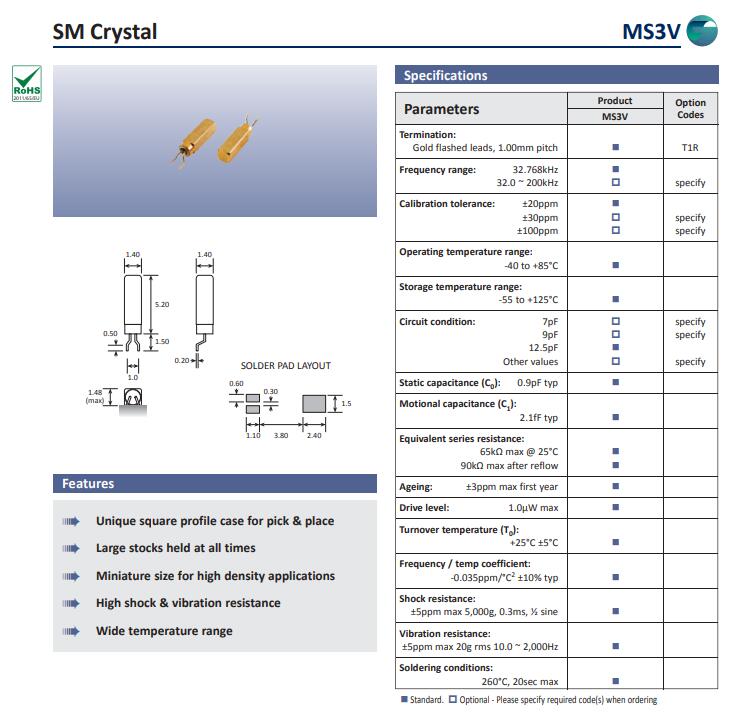 更多>>GolledgeCrystal,MS3V晶振,音叉型晶體諧振器