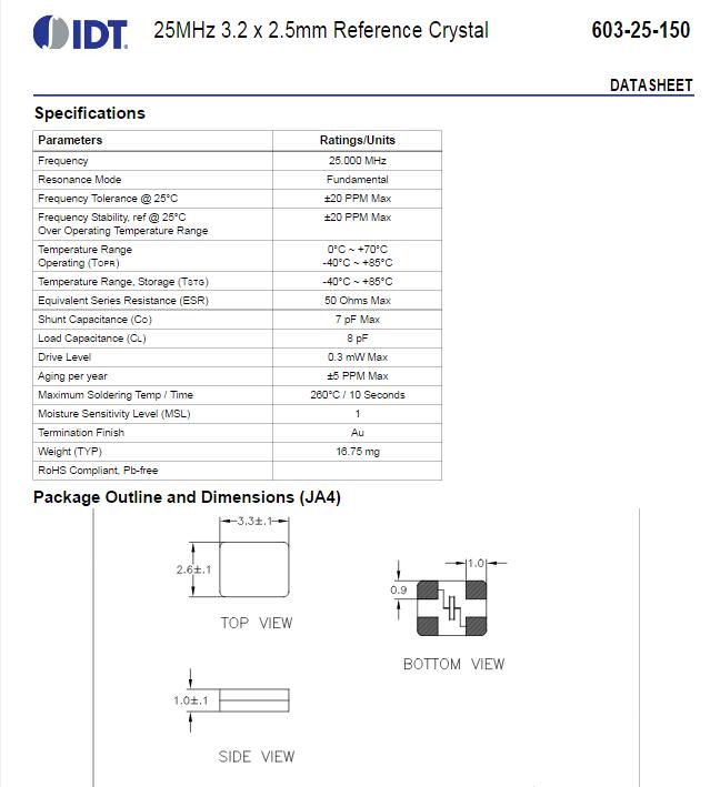 更多>>IDT晶振,603-25-150JA4I晶振,3225無(wú)源晶振