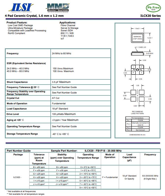 ILCX13-FF5F18- 20.000 MHz | ILSI | ILCX13 | -40°C ~ 85°C | 20 MHz | ±30ppm | 18 pF |