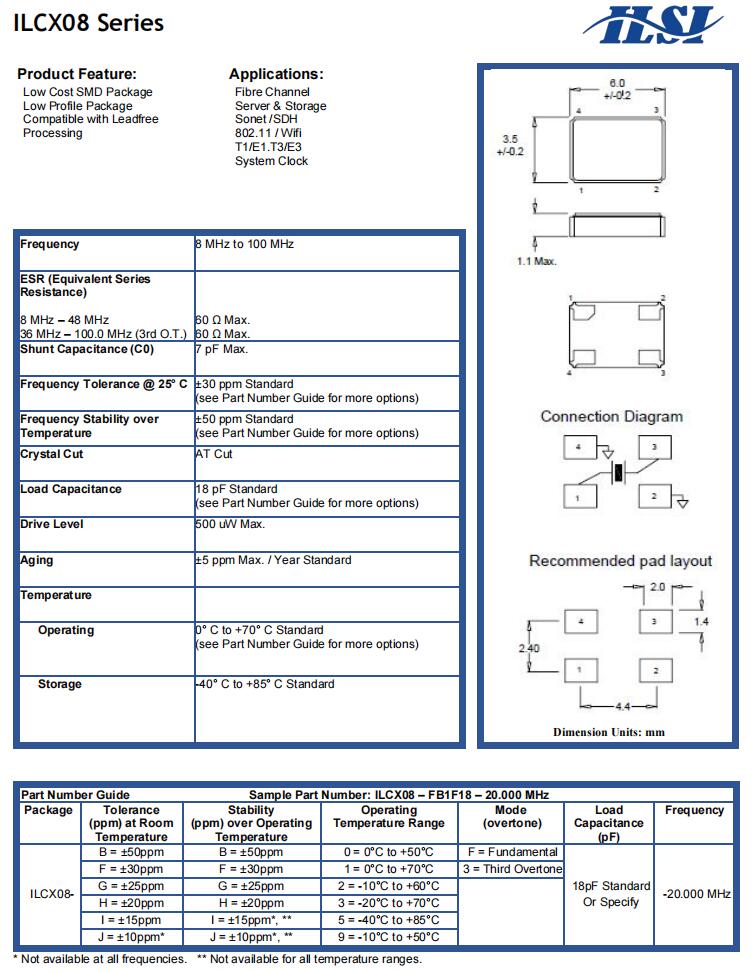 ILCX08-JG5F18- 24.000 MHz | ILSI | ILCX08 | -40°C ~ 85°C | 24 MHz | ±10ppm | 18 pF |