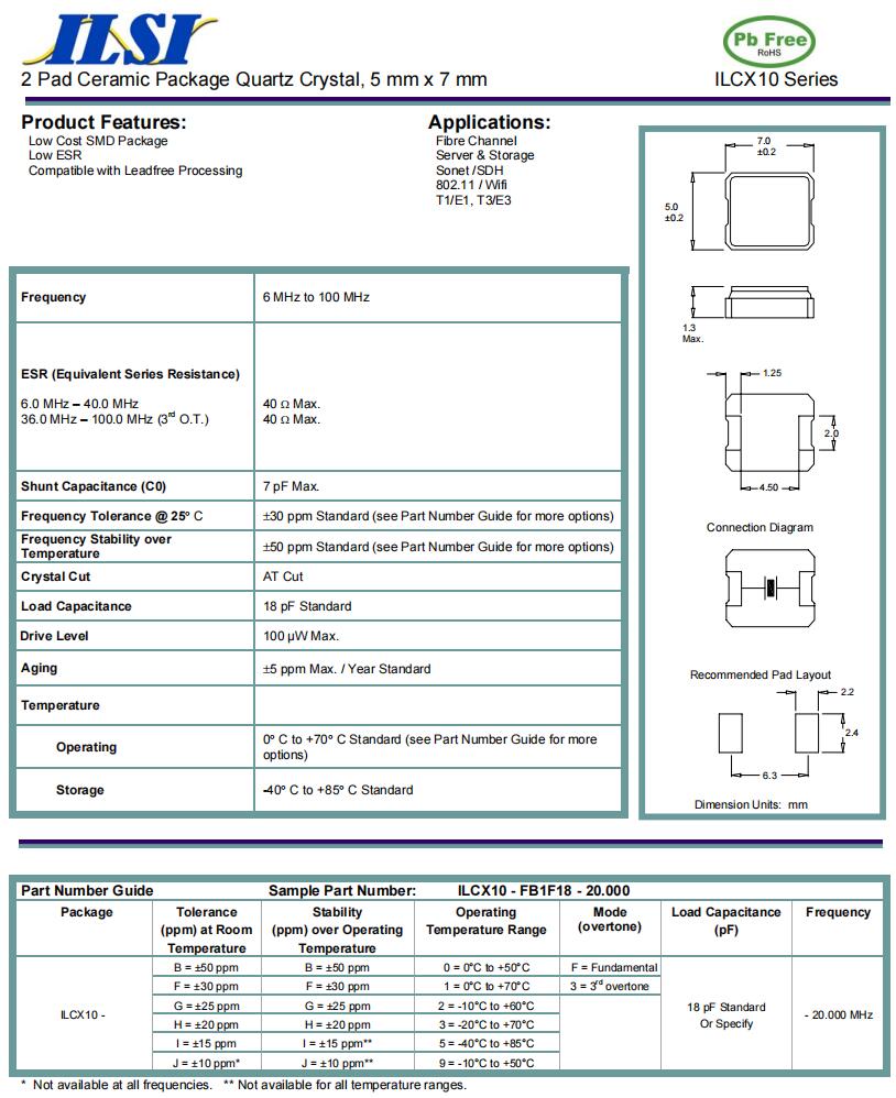 ILCX07B-FB1F18-27.120MHz | ILSI | ILCX07B | 0°C ~ 70°C | 27.12 MHz | ±30ppm | 18 pF |