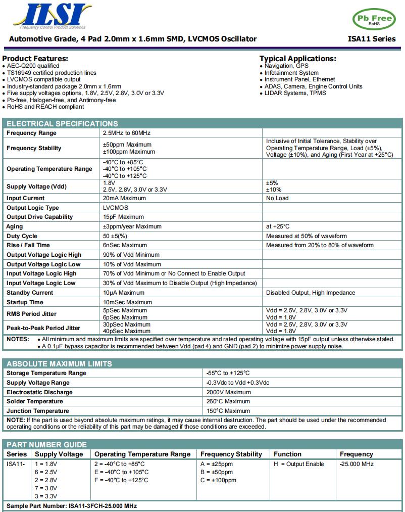 ILCX13-FF5F18- 25.000 MHz | ILSI | ILCX13 | -40°C ~ 85°C | 25 MHz | ±30ppm | 18 pF |