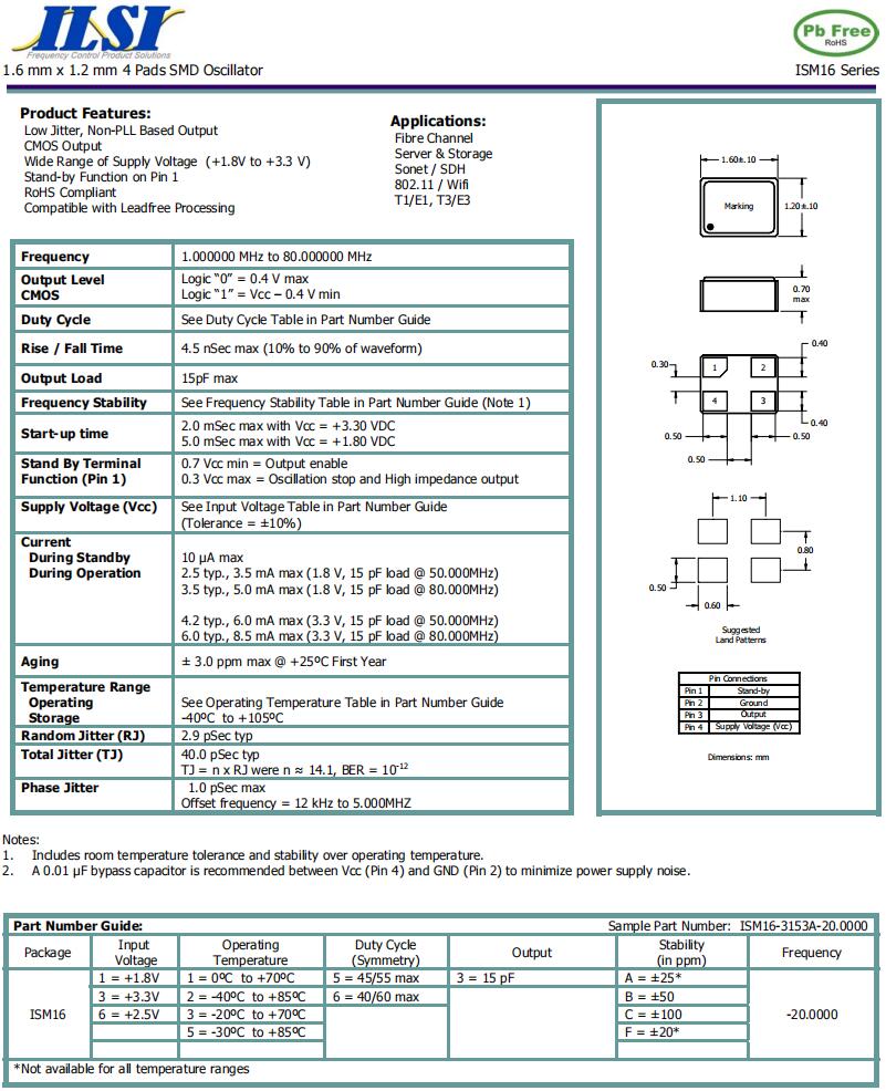ILCX13-JJ3F16- 16.000 MHz | ILSI | ILCX13 | -20°C ~ 70°C | 16 MHz | ±10ppm | 16 pF |