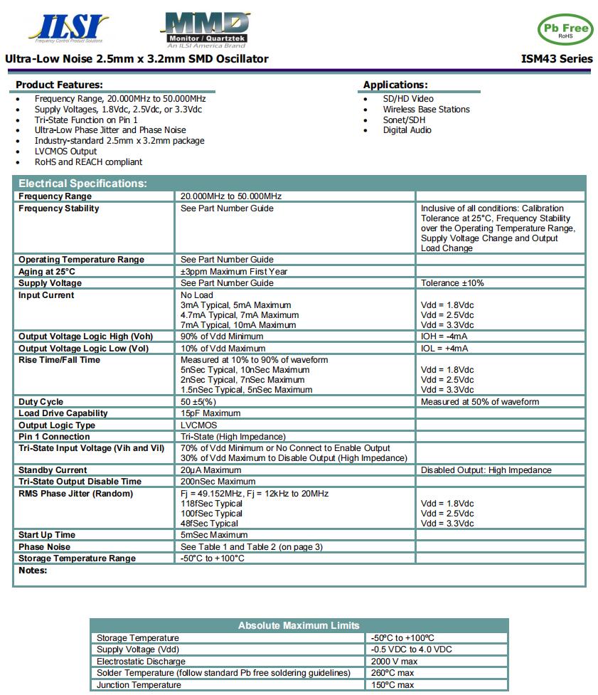 ILCX13-BB5F10- 49.152 MHz | ILSI | ILCX13 | -40°C ~ 85°C | 49.152 MHz | ±50ppm | 10 pF |