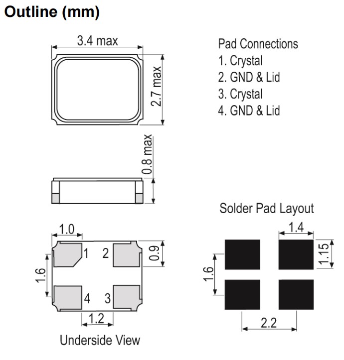 LFXTAL009650REEL | IQD晶振 | CRYSTAL 16.0000MHZ 16PF SMD | CFPX-180 |