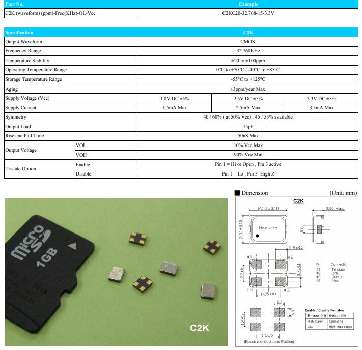 C2K (waveform) (ppm)-Freq(KHz)-OL-Vcc | C2KC20-32.768-15-3.3V |