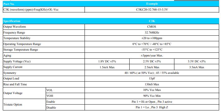 C3K (waveform) (ppm)-Freq(KHz)-OL-Vcc | C3KC20-32.768-15-3.3V |