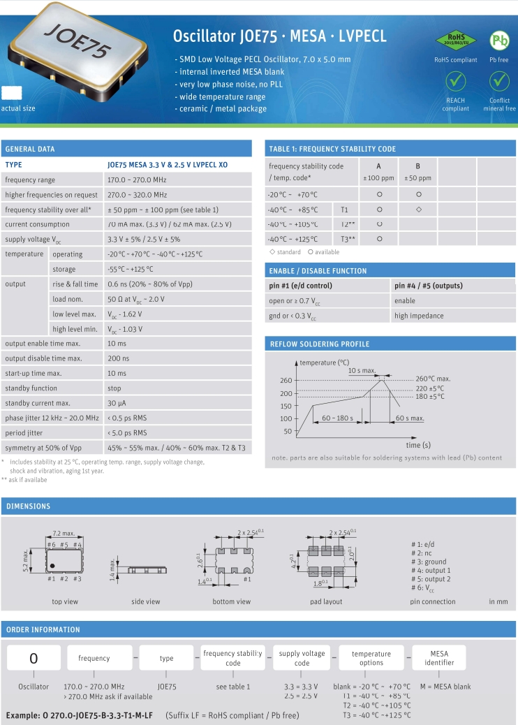 Jauch晶振,O 170.0-JOE75-B-3.3-T1-M-LF,6G無(wú)線通信晶振規(guī)格表