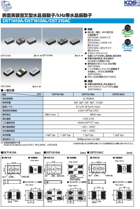 更多>>KDS無(wú)源晶振DST1610AL,1TJL070DR1A0009音叉晶體
