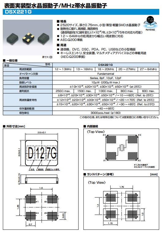 KDS晶振 | 1ZCA12000BA0A | DSX221G | 2520 | 12.000MHZ | ||