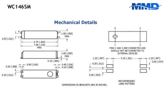麥迪康進(jìn)口晶振,WC146SMF-32.768KHZ-T,6G基站晶振尺寸圖
