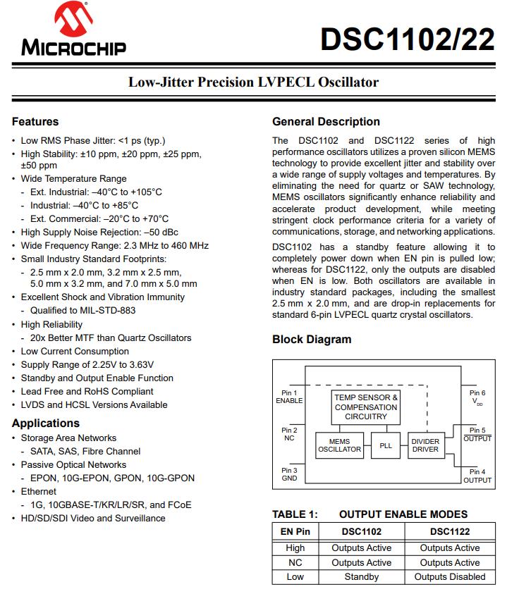 DSC1121AE2-125.0000T | Microchip Technology | DSC1121 | 125MHz | 2.25 V ~ 3.6 V | 0.276" L x 0.197" W (7.00mm x 5.00mm) |